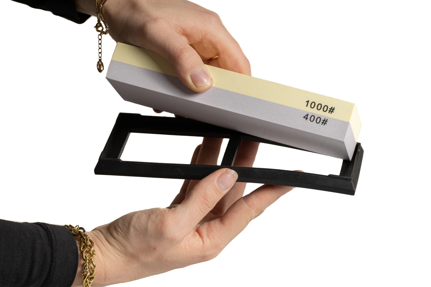 De Blackwell Wetsteen met een korrelgrootte van 400/1000 is dus perfect voor de botte en beschadigde messen. Begin met de 400 grit om de snede van het mes weer terug in vorm te brengen of om braampjes weg te werken. Een wetsteen met een grove korrel neemt snel en efficiënt veel materiaal weg. Draai vervolgens de wetsteen om om je mes met de 1000 grit verder te slijpen. Vervolgens kan je de Blackwell Wetsteen met een korrelgrootte van 3000/5000 gebruiken om je messen vlijmscherp te polijsten.