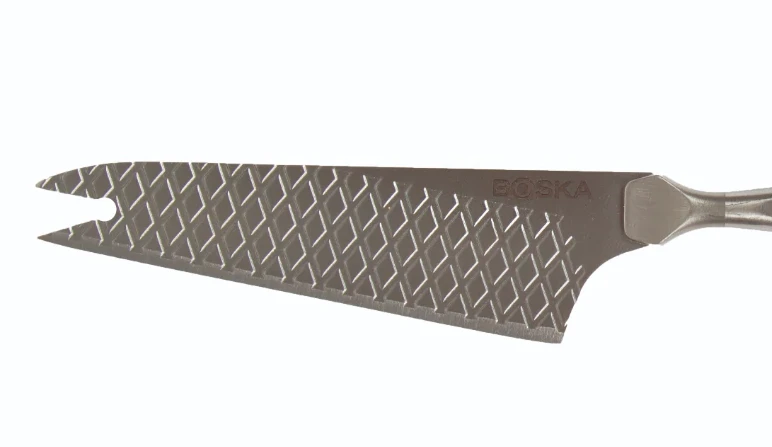 Het Boska Kaasmes Hafharde Kaas Monaco+ is perfect om de lekkerste halfharde en harde kazen te snijden. Denk daarbij aan Gouda of Cheddar. Dit mes heeft een non-stick coating en een wafelpatroon wat het plakken van kaas mooi voorkomt. Op dit mes zitten twee puntjes waarmee je versgesneden kaas makkelijk aanreikt zonder hem zelf aan te raken. Dit mes is dus echt handig en hygiënisch, ideaal!