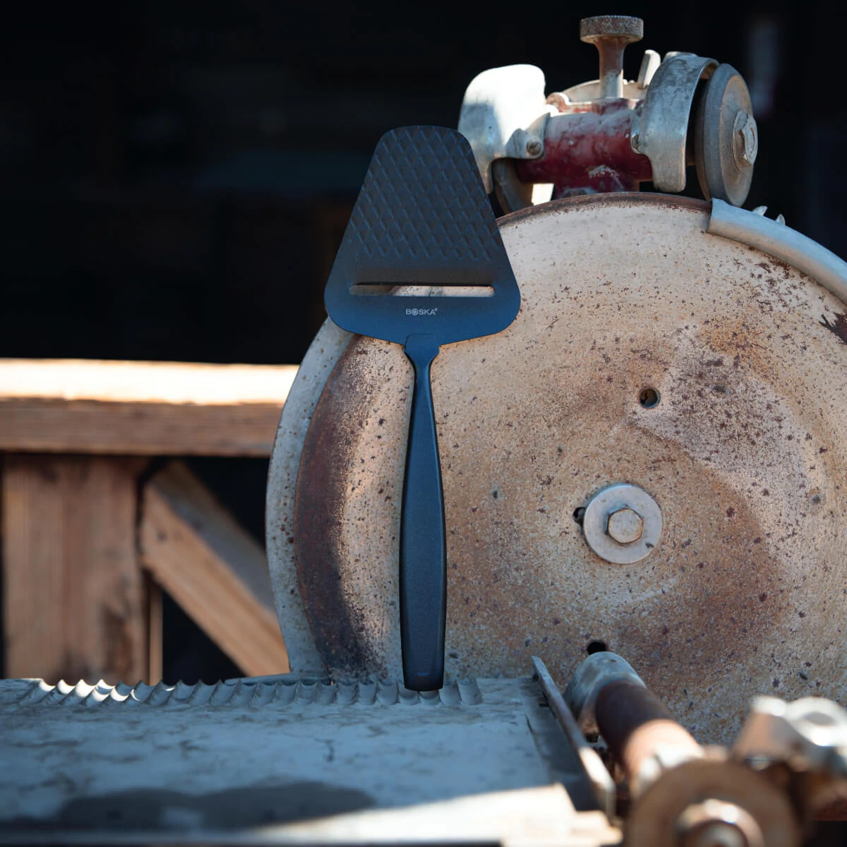 Naast alle tradionele kaasschaven, komt Boska nu ook met de mat zwarte editie. Deze Boska kaasschaaf Monaco is samengevoegd uit meer dan 120 jaar ervaring en heeft een industriële look. Door het gewafelde oppervlak met non-stick coating schaaf je heel makkelijk smaakvolle plakken, zonder dat de kaas blijft kleven. De schaaf is geschikt voor mooie, dunne plakken half harde en harde kaas. Denk daarbij bijvoorbeeld aan echt Hollandse Gouda. Na gebruik kan de kaasschaaf in de vaatwasser worden gereinigd. De kaasschaaf wordt bovendien geleverd in een mooie geschenkverpakking.
