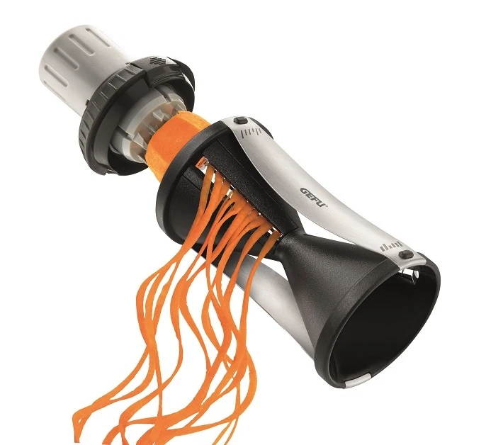 Maak een heerlijk roerbak gerecht met diverse groente noodles, of een pan courgetti met de Gefu spiraalsnijder Spirelli 2.0. Met dit handige keukenhulpje snijdt u uw groenten in slierten van 2 x 3 mm of 3.5 x 5 mm. De Gefu spiraalsnijder werkt in principe als een puntenslijper, waardoor u uw groente in een handomdraai omtovert tot noodles! Na gebruik plaatst u de spiraalsnijder in de vaatwasser waarna deze weer klaar is voor gebruik.