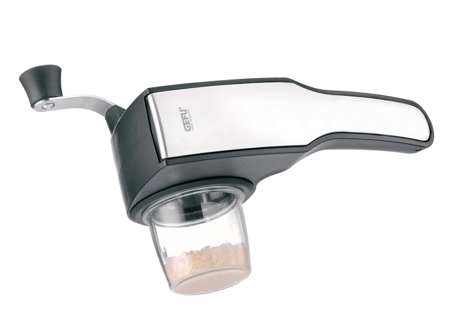 Houdt je aanrecht netjes en schoon tijdens het raspen met de Gefu Trommelrasp / Handrasp! De rasp is geschikt voor zowel linkshandig als rechtshandig en inclusief 2 verschillende raspen: een grove en fijne voor het raspen van harde kazen, noten en chocolade. Vang alles wat je rasp meteen op in het handige opvangbakje. Na het gebruiken van de Gefu Trommelrasp / Handrasp kan deze eenvoudig worden gereinigd in de vaatwasser.