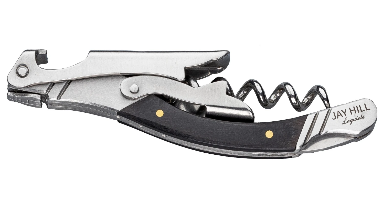 Zoek jij een kurkentrekker van kwaliteit met een mooi design? Deze multifunctionele Laguiole kurkentrekker van Jay Hill heeft een ergonomisch design met een stijlvolle look. Het handvat is gemaakt van modern zwart ebbenhout. Naast het scherpe lemmet is het zakmes ook voorzien van een kurkentrekker en handige flessenopener. Wil je deze kurkentrekker cadeau geven? De Jay Hill kurkentrekker wordt geleverd in een luxe houten kist met mooie geschenkverpakking.