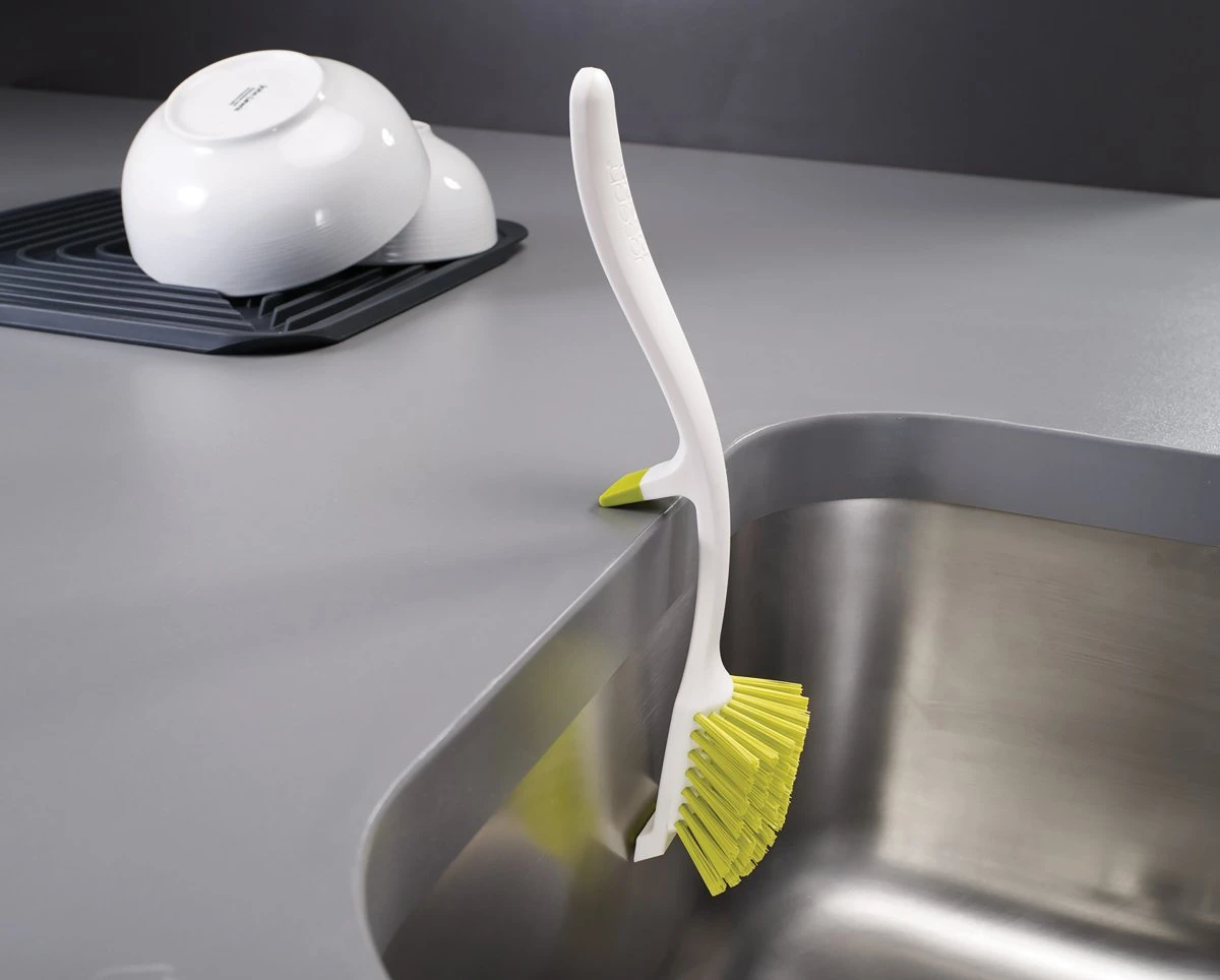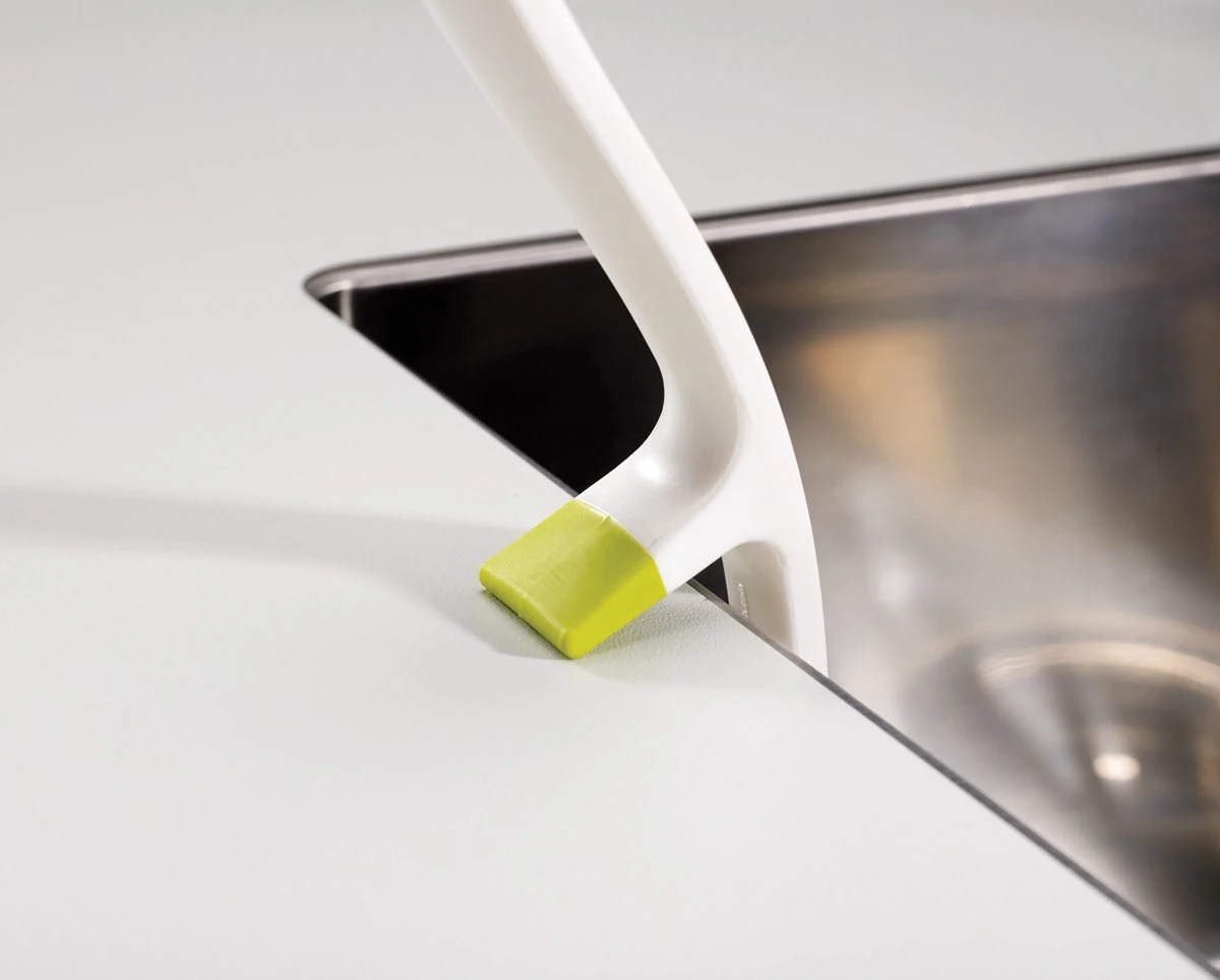 Ben je het beu om je vieze afwasborstel uit de gootsteen te vissen? De Joseph Joseph afwasborstel Edge kan door middel van de steun aan de kant van jouw gootsteen rusten, waardoor alle zeepsop aan de afwasborstel eenvoudigweg wegloopt. De anti-kras afwasborstel Edge heeft een geïntegreerde panschraper die taaie voedselresten verwijderd.