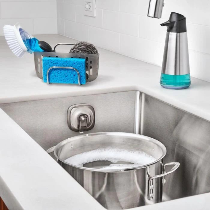 Houdt je aanrecht opgeruimd en netjes dankzij de Oxo gootsteen organizer. Met deze gootsteenorganiser hou jij namelijk je sponzen en borstels gemakkelijk op één plek. Ook is de organiser makkelijk te plaatsen, hij is voorzien van stevige zuignapen die gemakkelijk geplaatst kunnen worden. De Oxo gootsteen organizer is ook makkelijk te verwijderen en te reinigen in de vaatwasser.