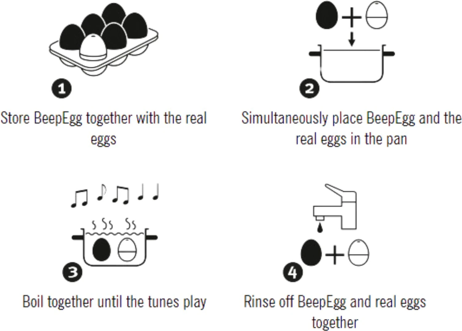 Kook het piepei mee met de eieren en je zult 3 melodietjes horen: