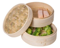 Zoek jij nog een nieuw stoommand? Dan is de Cookinglife Stoommand Bamboe ø 25 cm perfect voor jou! Deze stoommand heeft een originele look. Doordat het eten niet in aanraking komt met olie of water, behoudt het zijn voedingsstoffen en wordt er geen onnodig vet aan je maaltijd toegevoegd. Stomen is dus een supergezonde bereidingswijze! De hoogte van 1 mandje is 4 cm.