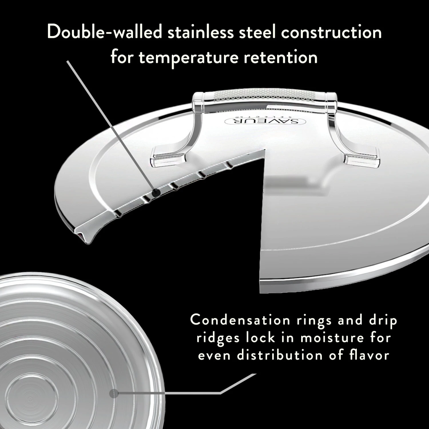 Deze Kookpan bevat ergonomische, hittebestendige handgrepen. Deze koelblijvende handgrepen zijn voorzien van reliëf met de kenmerkende textuur van Saveur Selects, dat zorgt voor een comfortabele antisliphandgreep.