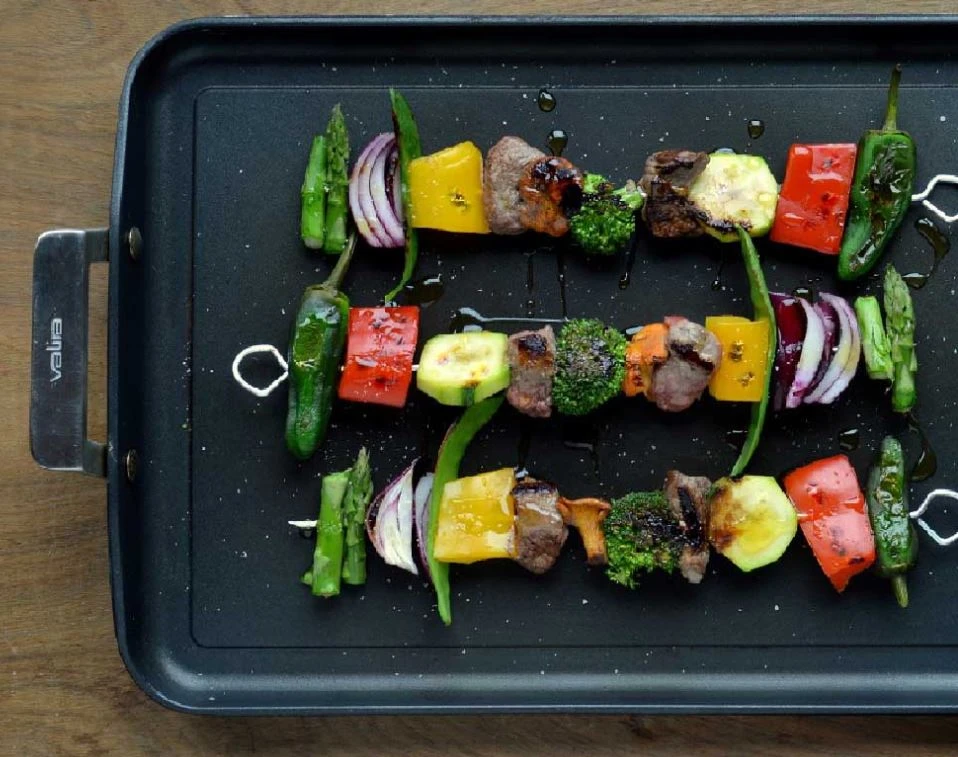 Met de Valira Bakplaat Aire maak je gemakkelijk thuis de heerlijkste gerechten klaar! Wat dacht je van een lekker stukje zalm, of Mediterraanse groentenspiesjes? Deze bakplaat kan je daar goed bij gebruiken! De bakplaat is gemaakt van aluminium waardoor hij lekker licht in gewicht is. Hij heeft een afmeting van 28 x 28 centimeter en heeft twee stevige handvatten. Deze worden tijdens het bakken van eten niet warm, dus je kan ze gerust vastpakken. De bakplaat is voorzien van een anti-aanbaklaag die geheel PFOA-vrij is. Wel zo fijn! Deze stof komt namelijk vrij bij hoge temperaturen en is op lange termijn erg slecht voor de gezondheid.